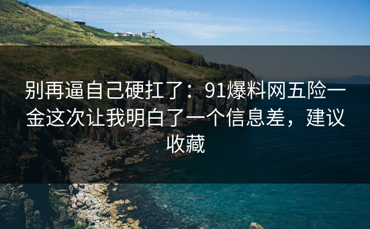别再逼自己硬扛了:91爆料网五险一金这次让我明白了一个信息差,建议收...